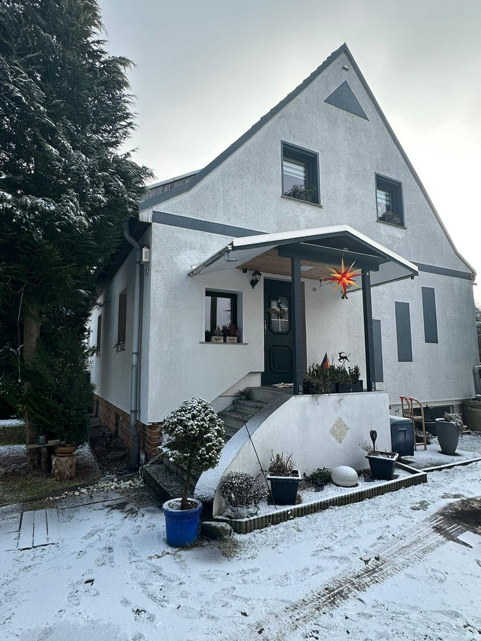 Das Haus verfügt über insgesamt fünf Zimmer, davon drei Schlafzimmer und zwei Badezimmer. Die Zimmeraufteilung erstreckt sich über zwei Etagen, wodurch genügend Platz für die ganze Familie geboten wird. Ein Keller mit einer Fläche von 82 m² bietet zusätzlichen Stauraum und Möglichkeit für Hobbyräume.