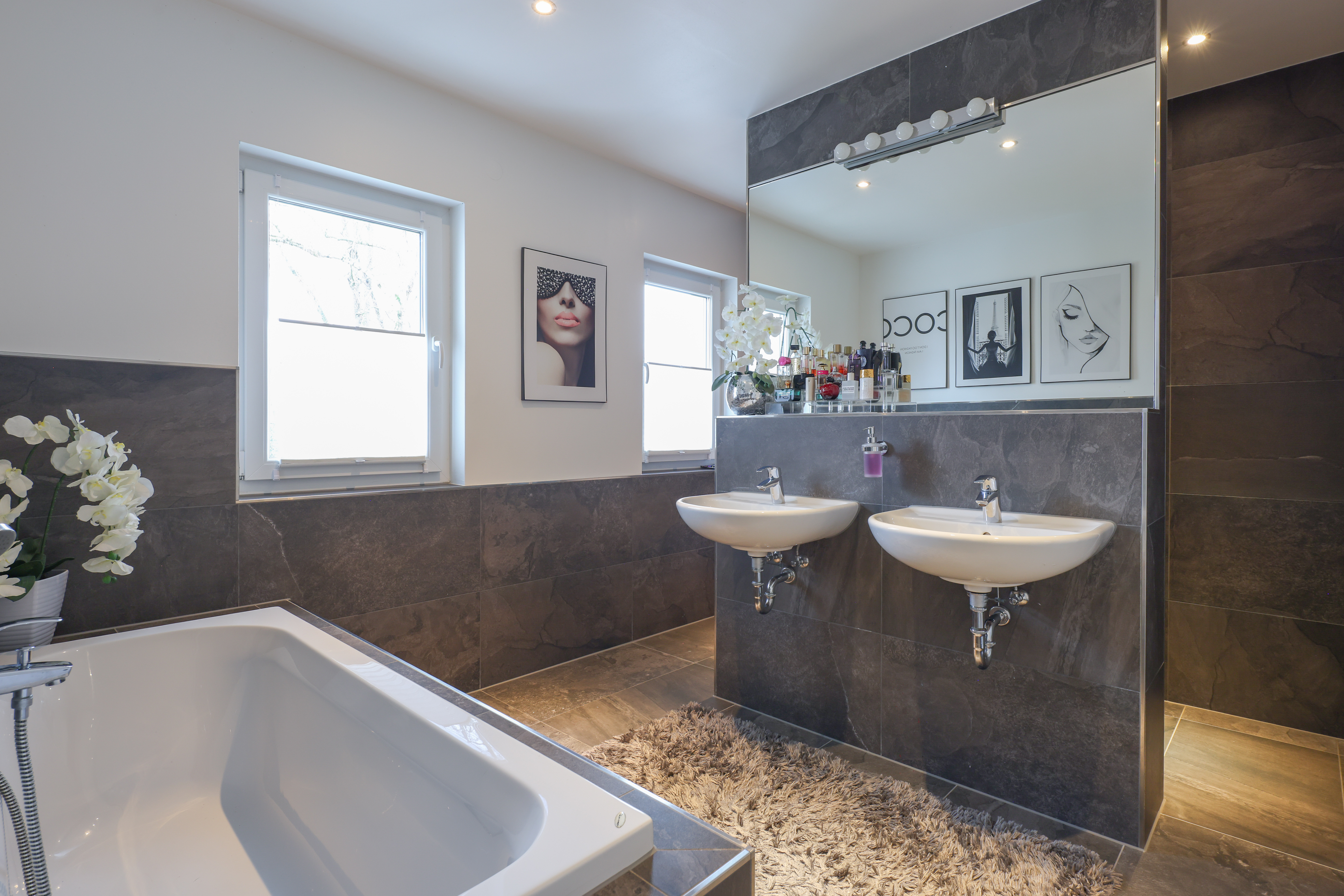 - Ausstattung des Bades Badewanne Dusche Fenster